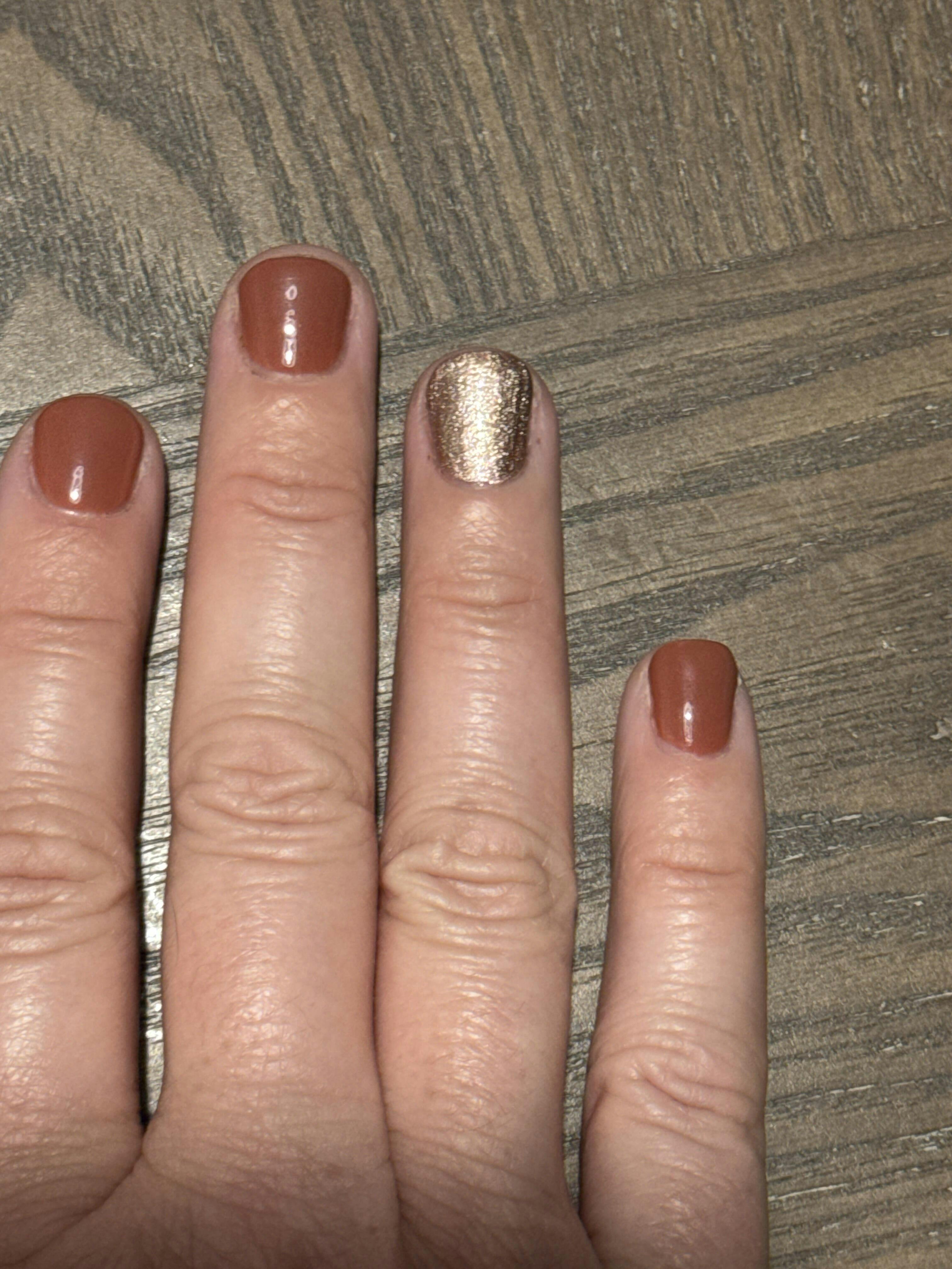This is a beautiful shade. It is beautiful by itself, or I also used it as an overlay over two coats of Grapefruit sparkle shellac I had applied. It gave a slight gold tint to the beautiful pink of the grapefruit. Love it.